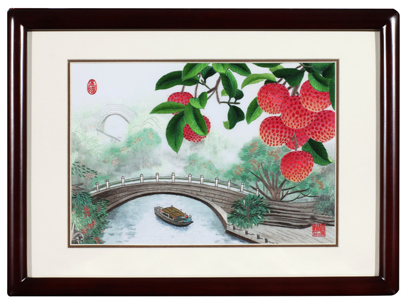 由广东省工艺美术大师伍洁仪纯手工刺绣作品《千古留名》、《闲情》在第五届中国成都国际非遗节上向观众朋友展示,同场展示的还有描绘广州标志性景点的广绣特色手信《广州塔》、《五羊红棉》、《荔枝湾》三幅作品。