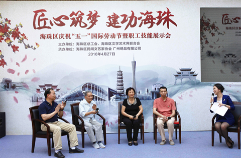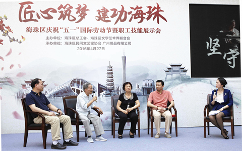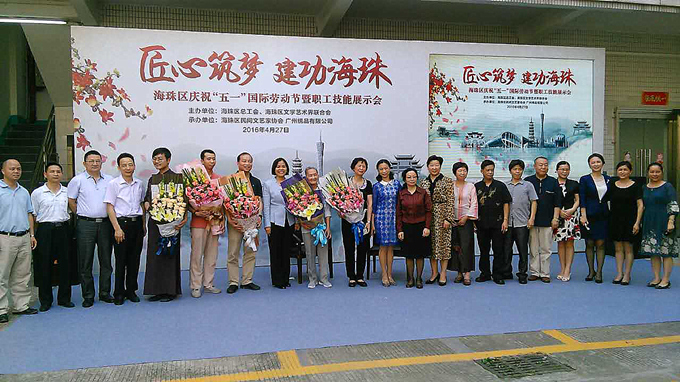 4月27日,由海珠区总工会、海珠区文学艺术界联合会主办,海珠区民间文艺家协会、广州绣品工艺厂有限公司承办的“匠心筑梦 建功海珠”--海珠区庆祝“五一”国际劳动节暨职工技能展示会在我司举办。本次活动响应李克强总理在今年工作报告中提出的“工匠精神”,以“坚守”、“传承”、“创新”作为活动的主题,由工艺匠人向广大的职工群众讲述他们的故事。